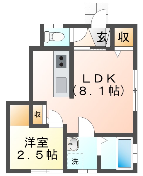 1LDK (洋2.5、LDK8.1)